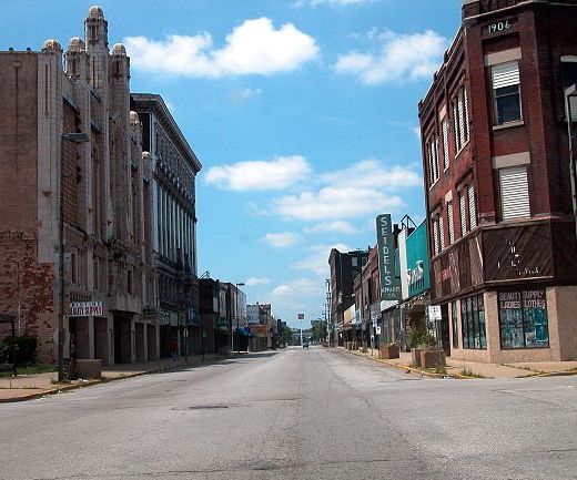 East St Louis is actually in Illinois, across the river from St Louis, Missouri.