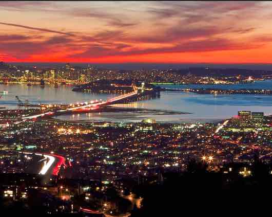 The Heights refers to Milller's home in the hills above Oakland, which he also called the "Hights". The brave young city on the Pacific is San Francisco across the bay.