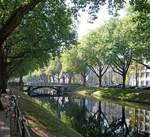 The Neoclassical hunting palace is the Schloss Jägerhof. It is now the Goethe Museum.