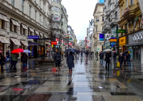 Rainy street in Vienna, Austria