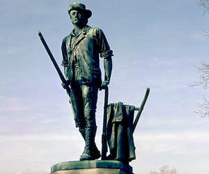 The first stanza of the poem is inscribed on the statue "The Minute Man" (below) erected in 1875, which stands by the Old North Bridge.